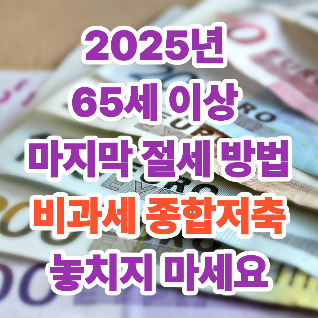 만 65세 이상 고객이라면, 2025년이 지나기 전에 비과세 종합저축 계좌를 개설하고 5천만 원 한도를 활용하여, 이자/배당 소득에 대한 세금 걱정 없이 안정적인 노후 자산을 준비하시기 바랍니다! 이 마지막 기회를 절대 놓치지 마세요!